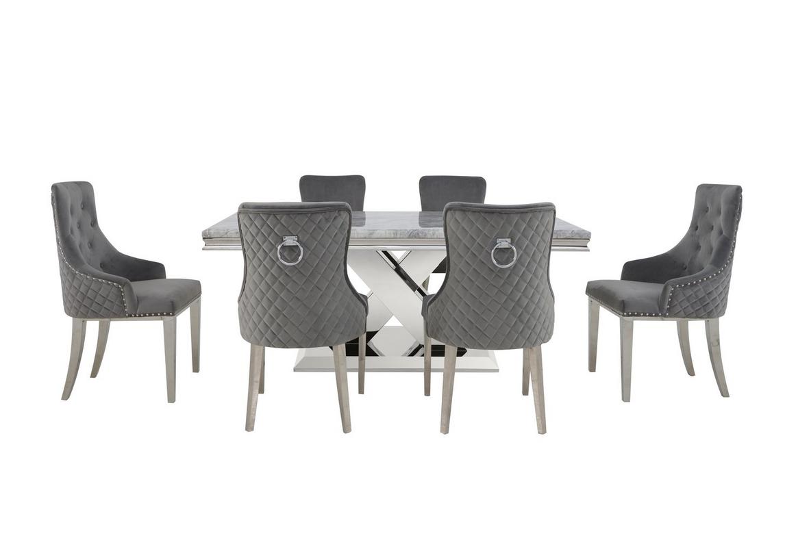High back dark grey linen tufted upholstered dining chairs, set of 2 by btexpert. Table measurement is 44w x 44l x 30h and the chairs are 17.25w x 21.75d x 38.5h. Crafted from mdf and metal, these chairs are built for comfort and durability. ( 0.0) out of 5 stars. Horgen contemporary gray faux leather dining chairs with metal frame, set of 2.